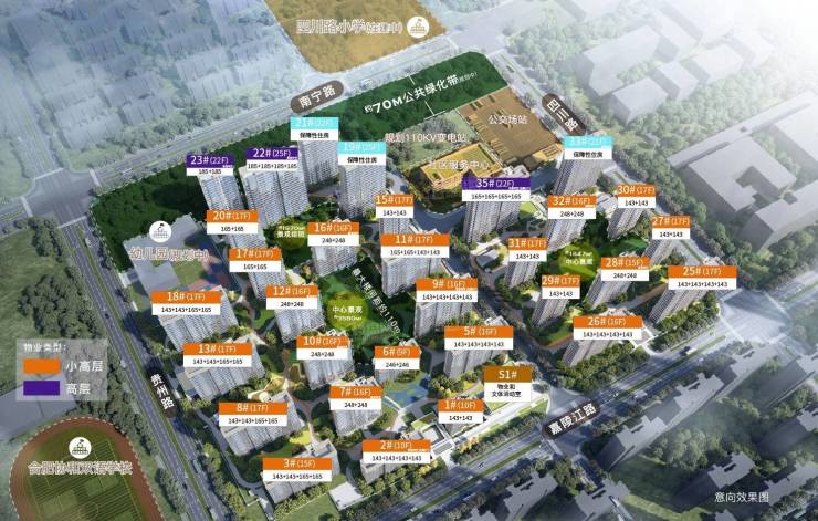 高速尚阖院位于滨湖金融板块,项目划分为A地块和B地块,共规划了31栋楼栋,包括洋房、小高层和高层。A地块规划了21栋楼栋,其中包括3栋洋房、14栋小高层和4栋高层;B地块规划了10栋楼栋,其中包括8栋小高层和2栋高层。项目可售房源约1300套,产品规划建筑面积约为140-248㎡,以大户型和大空间为主。