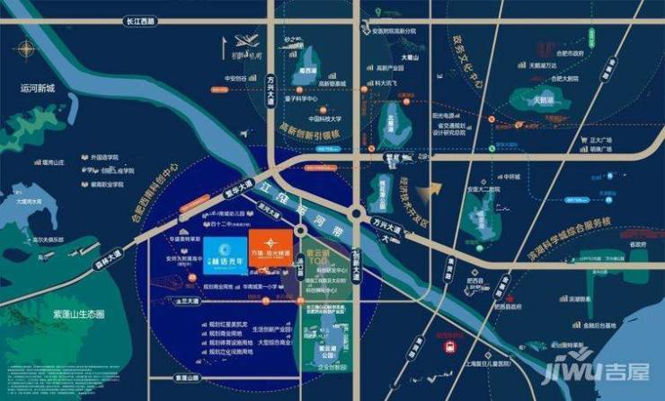 由品牌房企万瑞集团与国企城投联合打造的万瑞林语光年项目,便正好位于紫云湖片区内,具体位置是肥西派河大道与华三路交口向西,紧邻合肥四十二中华南城分校,旁边还有在售的保利紫云项目,地理位置还是不错的。