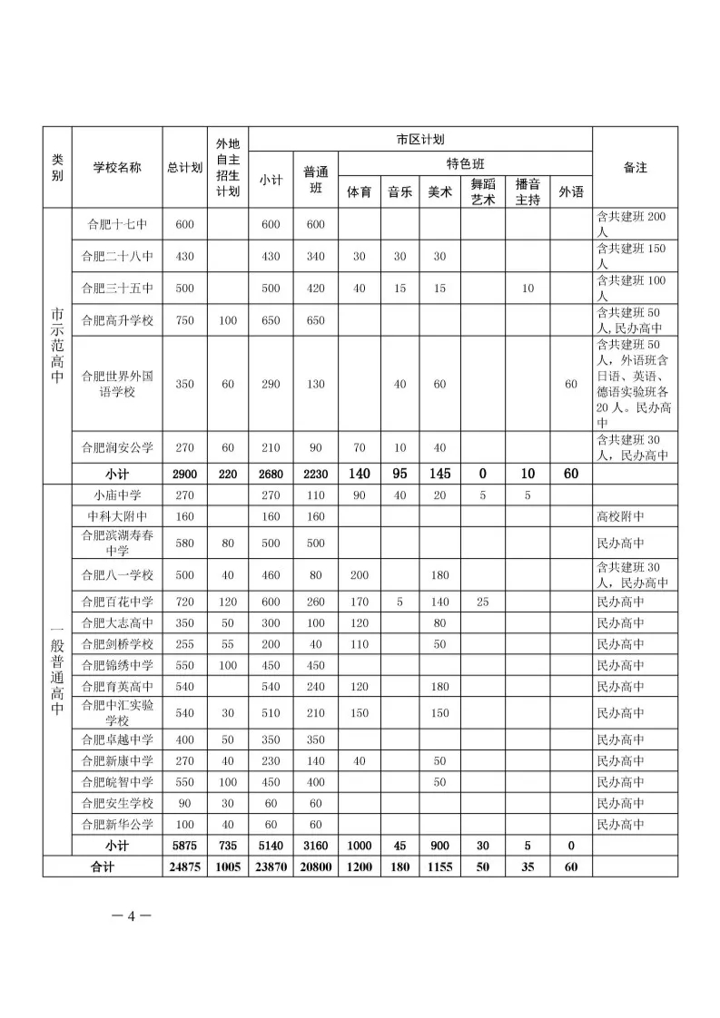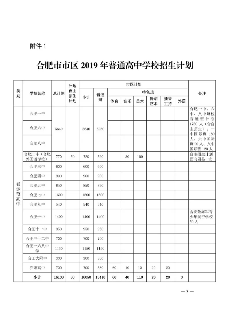 就在刚刚,2019年合肥市区高中招生计划公布啦!具体内容如下: