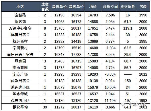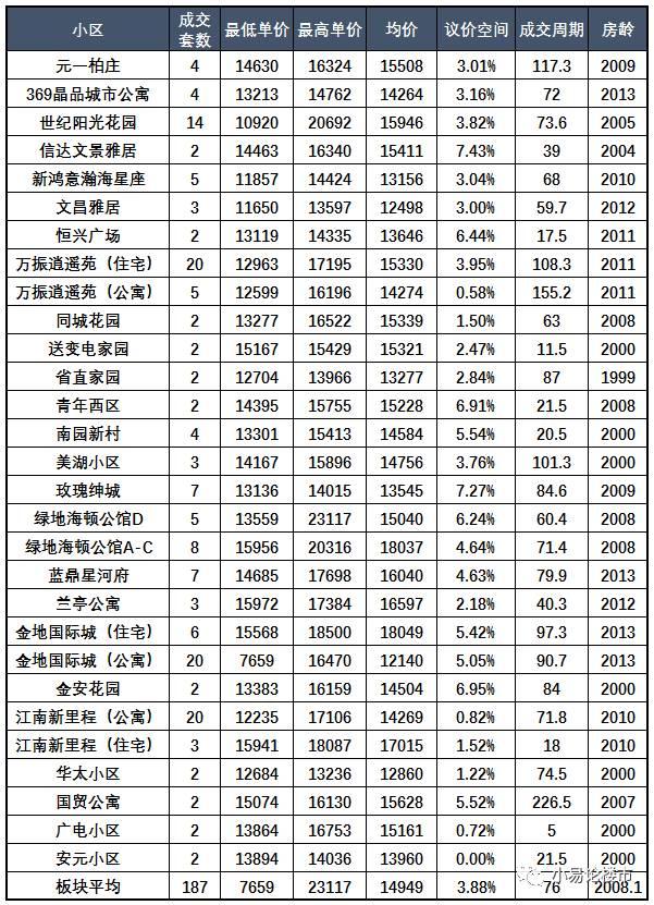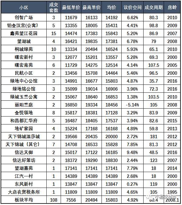 该板块成交量较大的是鑫苑望江花园,其次是宝业桐城绿苑,都是该区域内少有的几个房龄相对年轻的小区。我们看到上次分析中出现的和地蓝湾小区,其商住公寓平均成交价格只有7000多元/平米,这次居然一套也没卖出,那些趁着去年市场高涨高价抛售的业主,真该感到庆幸。