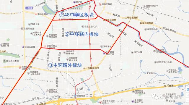 1、48中学区板块。具体范围为:环城河以南,南淝河以西,南一环路以北,金寨路以东。
