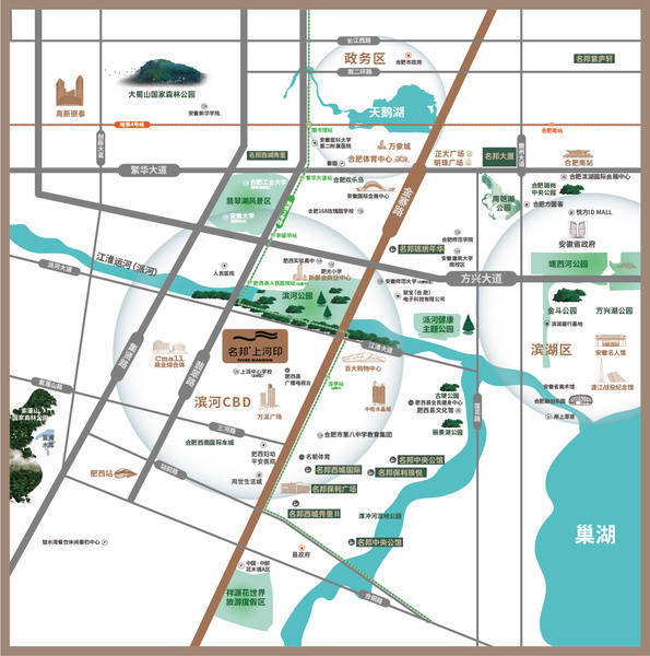 名邦上河印项目位于肥西主城核心位置,毗邻江淮运河、肥西滨河公园,周边配套资源齐全,满足多元化生活需求。规划7栋住宅,228户,面积140-160-200平,专为城市高端改善人群打造。