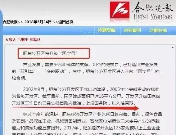 可以理解为,肥东经开区升级“高级”