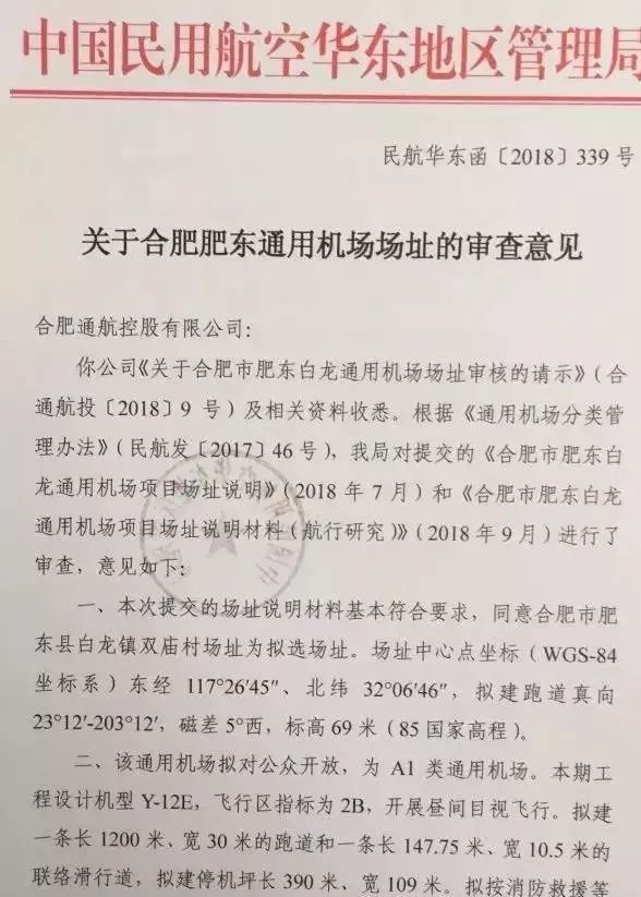 此次,肥东通用机场选址的批复,标志着项目取得实质性进展,为推进后续工作和早日建成通航奠定重要基础。