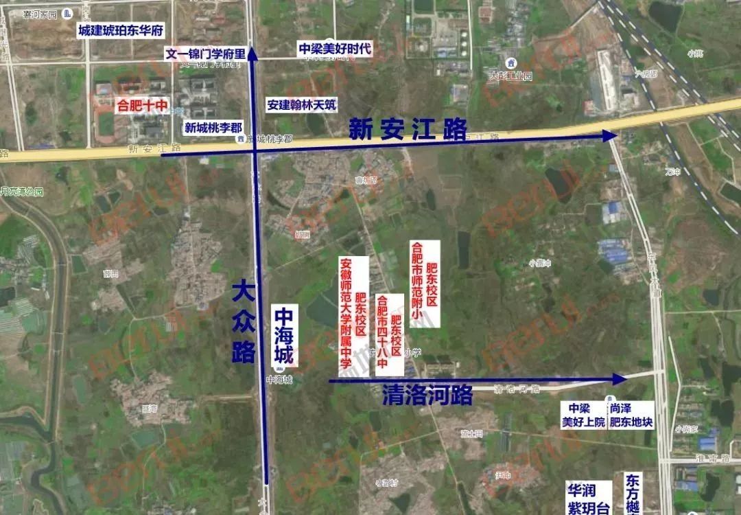 ●安徽师范大学附属中学肥东校区,选址大费村费南费北村民组,即汉涧路、清洛河路和黄甫山路之间。