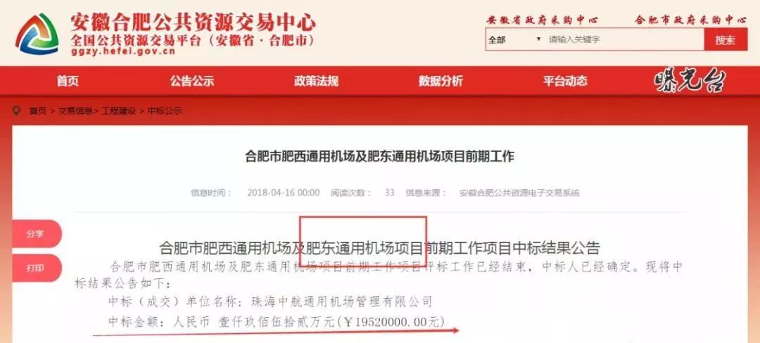 根据安徽合肥公共资源交易中心公示信息,肥西、肥东通用机场前期工作项目已1952万元中标。平均来算,肥东通用机场项目约投入近千万元。