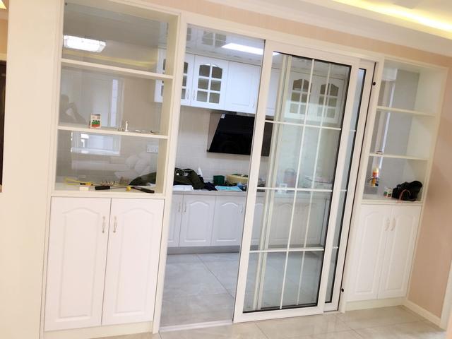这边是餐厅看向厨房,这部分比较宽,所以推拉门两边都做了餐柜,空间利用的非常好。