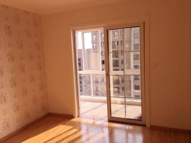 卧室带有阳台,装了玻璃移门,外面是落地窗,采光和通风都不错。
