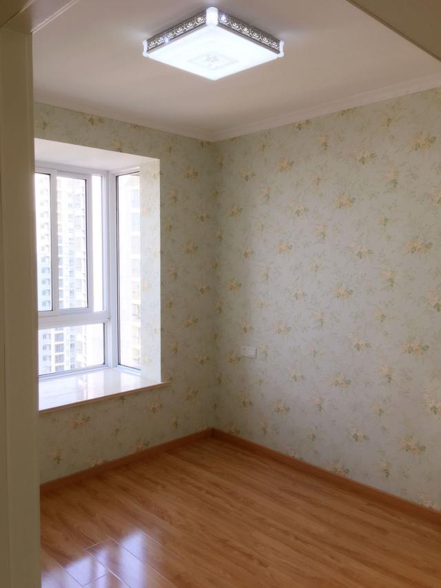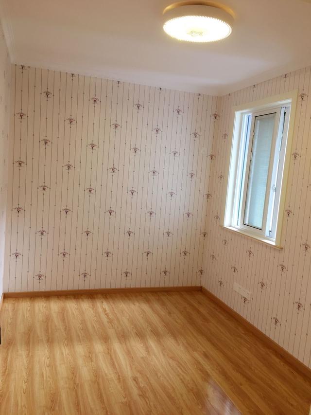 还有一间小卧室是儿童房,装的是圆形的灯,这间也是全都贴了壁纸,窗户比较小。