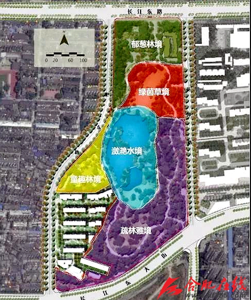 据了解,自2017年闭园提升改造以来,花冲公园改造规划范围为北至长江东路,西至肥东路,南至长江东大街,东至新规划道路花冲路。改造前公园总面积约93937平方米,本次改造面积扩增至116869平方米。改造后的花冲公园,设计了5大特色主题片区。