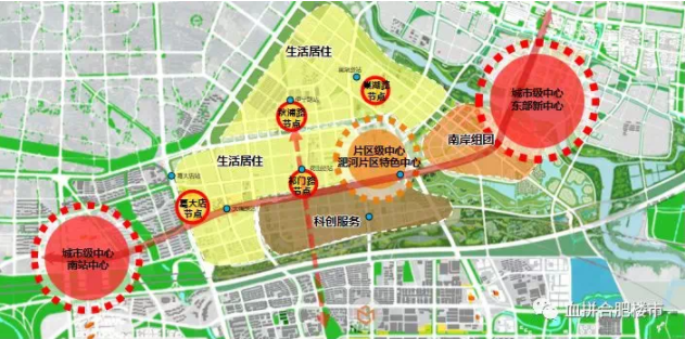 未来将规划构建城市中心、片区中心、社区中心三级公共中心体系,围绕南淝河打造两岸型城市级中心,同时依托关镇河水系,引入优质商业、文化、娱乐业态,打造特色休闲艺术中心,依托社区公共设施服务半径要求,结合轨道交通站点设置邻里中心。目前淝河新中心城市设计规划导则已完成。