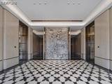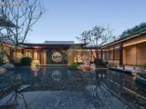 景墙选用蓝翡翠奢石,两侧高约2米(含基座)、重约600斤铜狮镇宅,尊贵感油然而生;罗汉松、杜鹃等百年珍稀古木错落其间,走在全域覆盖风雨连廊的高层区,这100多户业主的日常如同逛“大观园”一般,小而精致,美而雅…