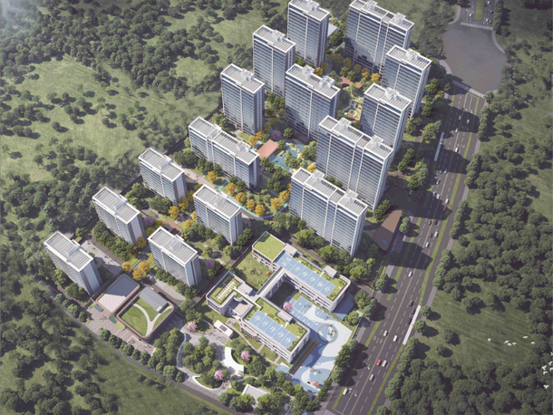 - 新中式美学营造:采用“公建化外立面+新中式飞檐翘角”设计,铝板与真石漆搭配彰显高端质感;社区入口打造“王府式”归家礼仪门庭,内部以“巢湖八景”为灵感,融合徽派文化元素打造中央湖景、主题花巷等景观节点,营造“蜀韵徽风”的居住意境。