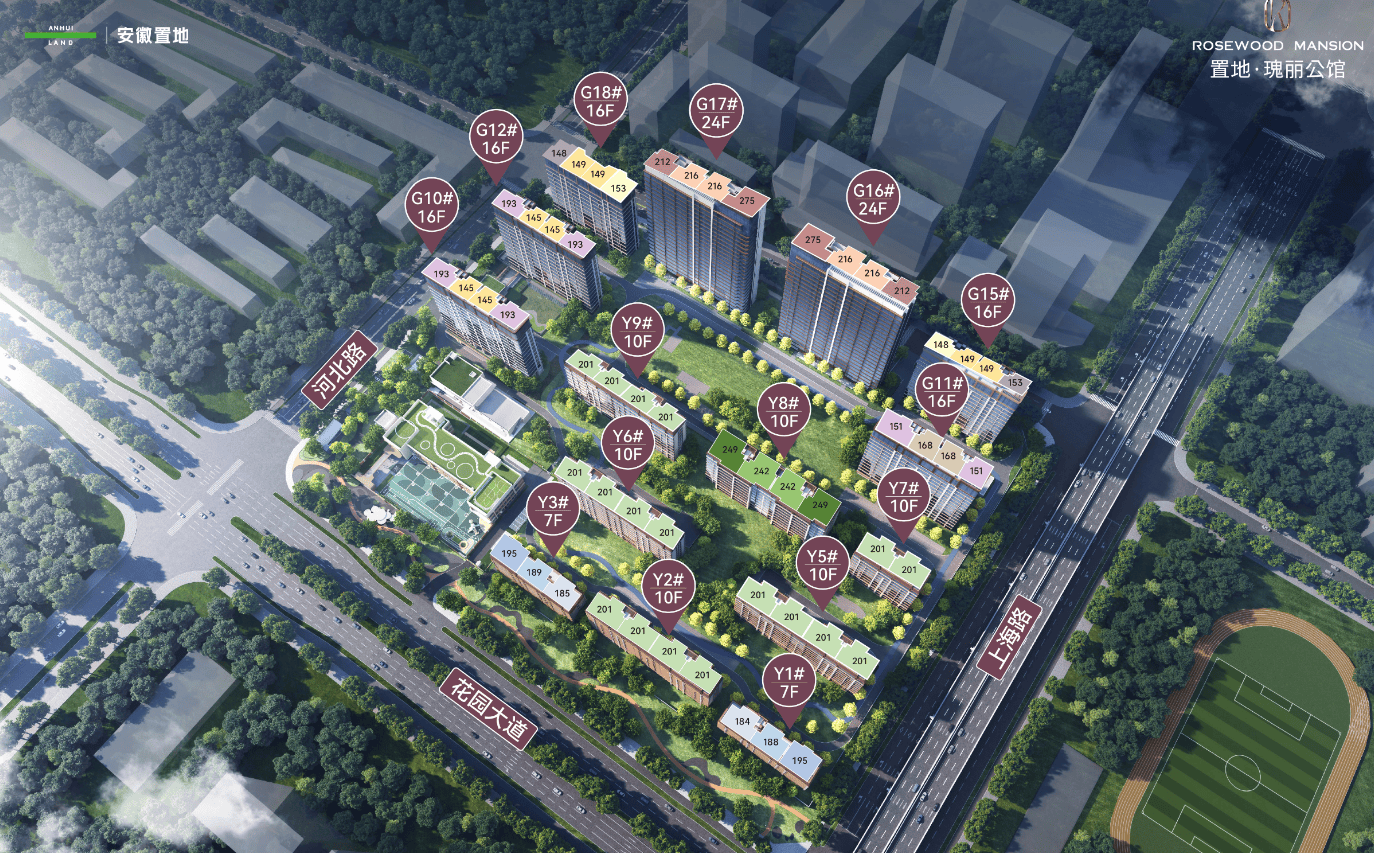 置地瑰丽公馆是安徽置地深耕合肥二十余年打造的青年友好型品质社区,落址包河区上海路与花园大道交口西北角,占位包河与滨湖双芯交汇处,享两区成熟配套与发展红利,以低密生态、全龄教育与高性价比,成为刚需与改善家庭的热门之选。