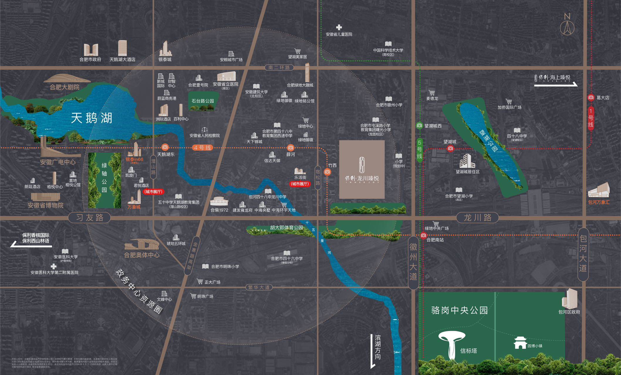 合肥保利龙川瑧悦位于包河区龙川路以北、潜口路以东(高铁板块核心区),交通出行方式以“双地铁+主干道+高铁”为核心,具体如下: