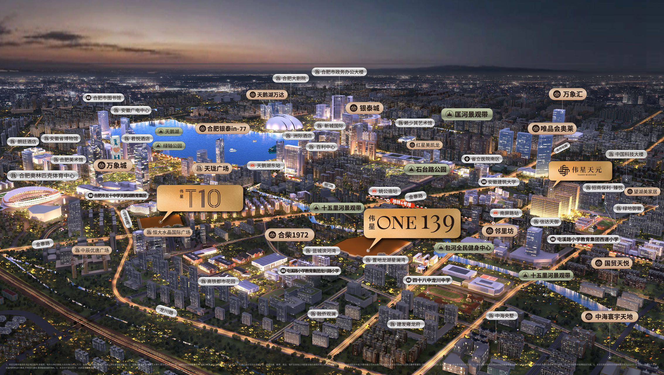 合肥伟星 ONE139 是伟星集团在合肥包河区打造的高端住宅项目。以下是其详细简介: 基本信息 位置:位于阊水路以南、合作化南路以西,地处包河区核心居住区。 规划指标:项目总占地面积约 7.2 万平方米,总建筑面积约 24 万平方米,容积率 2.0,绿化率 42%。整体规划由 10 栋高层、5 栋洋房以及 1 栋独立商业楼组成,总户数 1150 户,车位配比 1:1.25。 建筑设计:采用现代极简风格,外立面采用真石漆与玻璃幕墙组合,高层住宅层数在 24-28 层之间,洋房层数为 6-8 层。 社区配套 景观设计:以 “自然融合、功能多元” 为核心,打造了约 2.8 万平方米的中央景观花园,涵盖阳光草坪、景观水系、林下步道等多个景观节点。 休闲设施:规划了全龄段活动空间,包括婴幼儿活动区、儿童游乐区、青少年运动区、老年康养区等,还设置了宠物活动区、户外会客厅等。 智能化配置:配备了智能门禁系统、视频监控系统、电子巡更系统等设施,同时实现了社区 WiFi 全覆盖。 周边配套 交通:地铁 6 号线阊水路站距离项目仅 500 米,步行 6 分钟即可到达,可与地铁 1、2、3 号线无缝换乘。合作化南路、阊水路等城市主干道环绕,周边还有多个公交站点。 商业:项目自带约 1.2 万平方米的沿街商业,1 公里范围内有包河万达金街、望湖城商业中心等,3 公里范围内有万象城、银泰中心等高端商业综合体。 教育:3 公里范围内涵盖了从幼儿园到高中的一站式教育体系,对口包河区重点小学合肥市望湖小学,临近合肥第 48 中学南校区等。 医疗:距离包河区人民医院直线距离仅 0.9 公里,3 公里处有安徽医科大学第一附属医院绩溪路院区。 生态:周边有望湖公园、包公园等多个城市公园。 户型信息:推出了 104㎡三房两厅一卫、124㎡三房两厅两卫、144㎡四房两厅两卫、164㎡四房两厅三卫四种主力户型,每个户型都融入了前沿的智能家居设计。 价格信息:参考均价为 45000 元 /㎡,主力户型为 300-400㎡的大平层,总价 1350 万起。