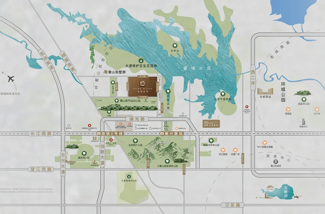 位置:合肥蜀山区董铺湖板块(渡仙桥路与飞虎峰路交口),紧邻大蜀山、董铺湖、四季花海等生态资源。