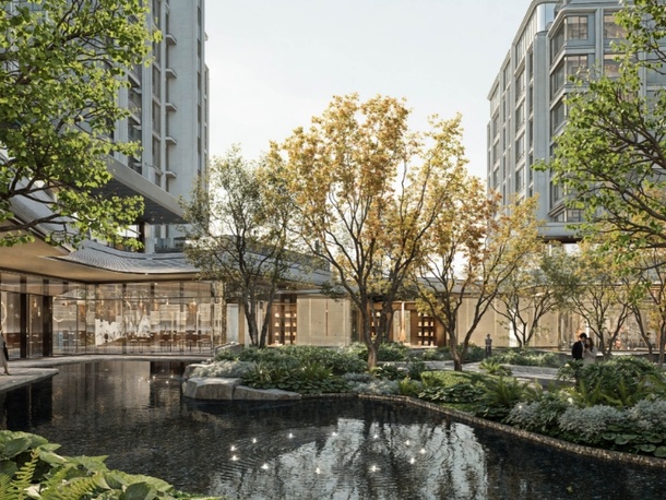 台地式景观:整体抬高4米,打造约5000㎡空中花园、1800㎡下沉庭院。