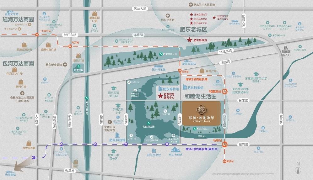 地铁2号线东延线(和睦湖站):已贯通运营,可直达合肥东站,快速连接主城区。