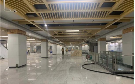 省政务中心东站车站内整体采用以金色为主色调的装修风格。该车站作为重点站,同时拥有7个进出口,预计八月中该车站将全部施工完成。