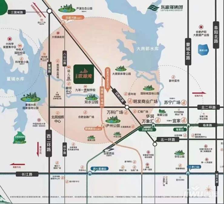 乐富强双湖湾地处庐阳四里河板块,城市向上的黄金走廊,三横三纵路网通达全程,双湖双公园环抱,繁华商圈围合,优质教育氛围,生活配套设施完善,居住于此,启幕繁华新生活。