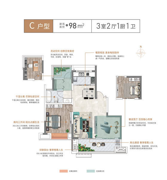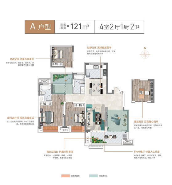 城改麓景雅苑的户型设计注重实用性和舒适性,建筑面积从93-121㎡不等,各户型均配备南向阳台和多功能灵动空间,提供了居住者静谧生活和高效便捷的居住体验。社区内部设施丰富,采用了现代化的园林设计理念,“二轴一带一核一环四心多节点”景观布局,绿化率高达40%,同时设有跑道、运动休闲区和首层架空层泛会所,为居民提供全年龄段的居住体验,力求打造一个宜居社区。