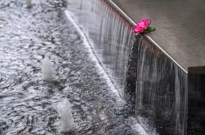宽阔入口大门,以两侧铺展开来的层叠式景墙,联动堂前现代写意水景,在突出入口仪式感的同时,与自然景观和谐搭配,形成变化有趣的门径景秩。