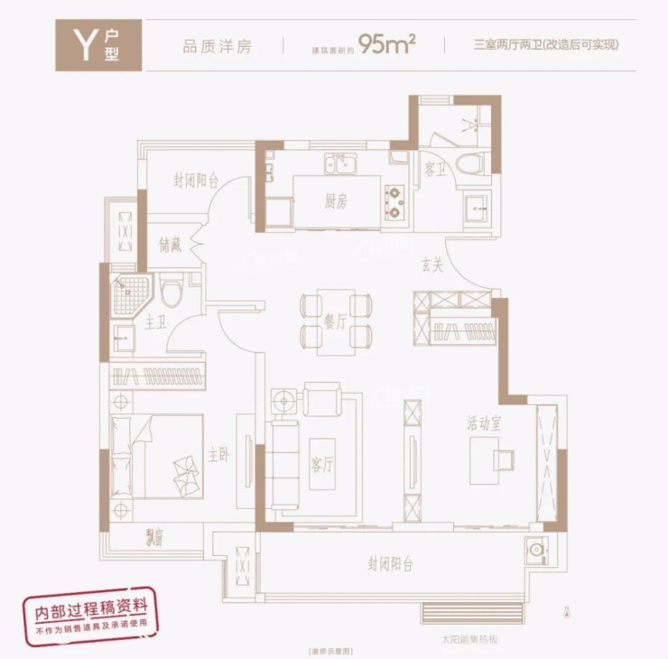 建面约95㎡的洋房户型:南北通透,三开间朝南,整体布局端正,空间利用合理,没有过多浪费。入户就是玄关,餐客厅一体,拥有南向宽景阳台;客卫做到了干湿分离。主卧套房,配有独立卫生间,整体看来,整个房型还是不错的。