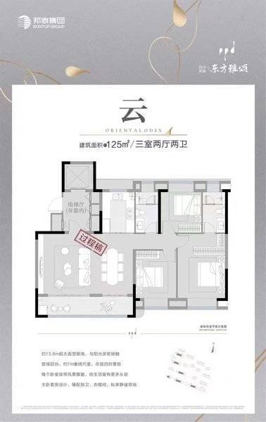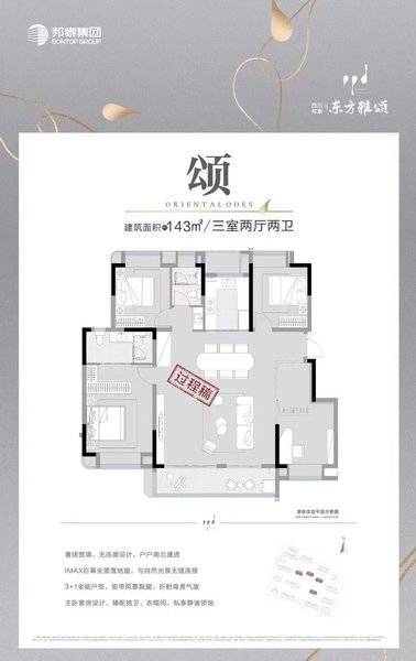 四川邦泰东方雅颂前期加推房源在售,小高层,户型建筑面积约125/138㎡,洋房,主力户型建筑面积约128㎡,143㎡,交付时间为2025年12月31日,具体一房一价。四川邦泰东方雅颂规划建设16栋住宅,其中12-17F的小高层共7栋,低密度多层9-10F共9栋,项目总建筑面积约为12.80万㎡,容积率1.8,绿地率43%,机动车停车位1311辆(其中地上9辆,地下1302辆),非机动停车位848辆。