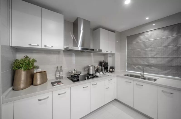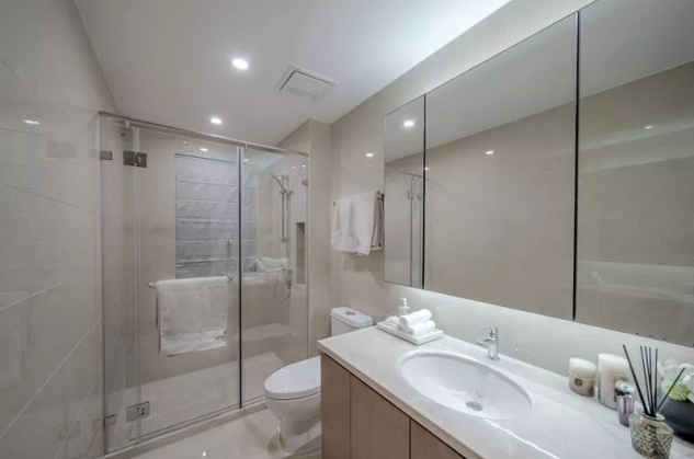 更加的人性化的细节设计。L型厨房配置老板烟机灶具,卫生间270°三门镜柜的开启方式让侧面妆容也可优质无暇,五星级酒店标准的淋浴房,入口石材挡水条防止水外溢。