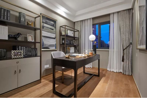 C2户型采用现代风格,强调功能性设计,线条简约流畅,用18年流行的“莫兰迪色系”为主色调,采用大面积的混油木质踢脚线,以精工打磨生活质感,以设计彰显现代典雅气质。
