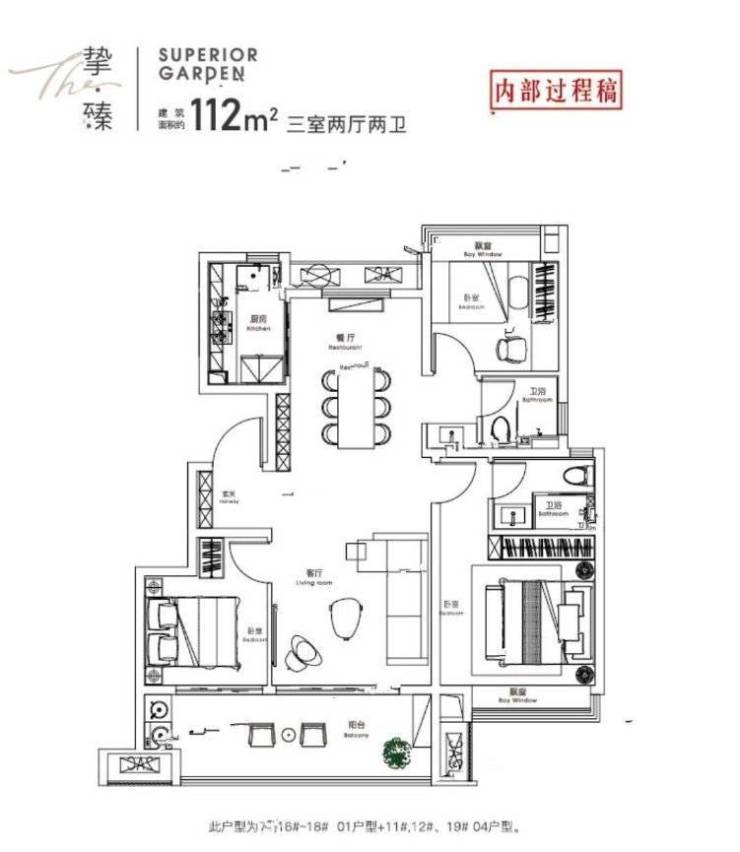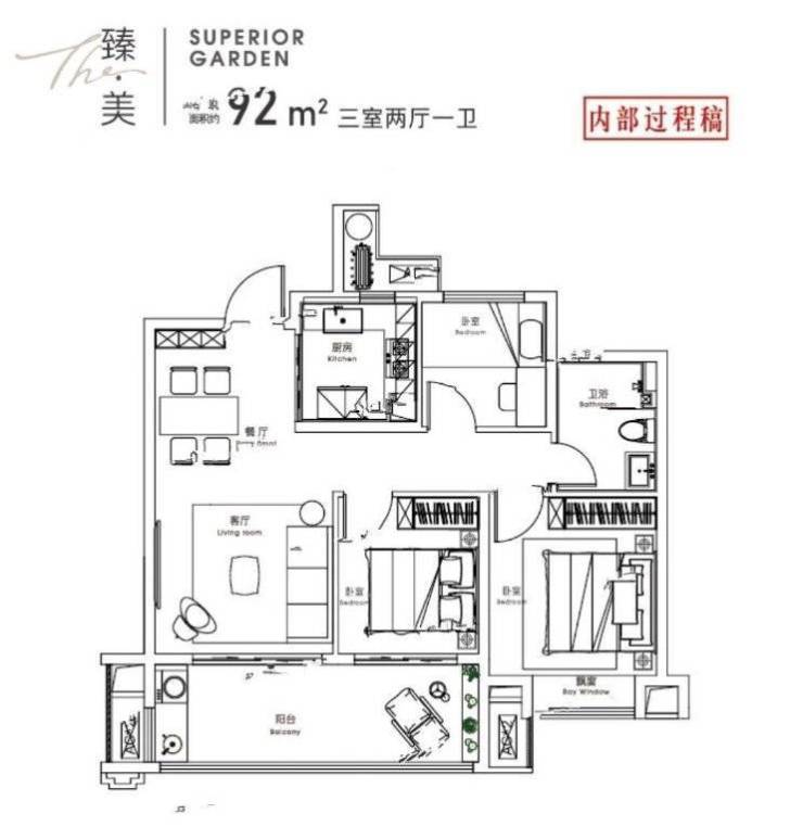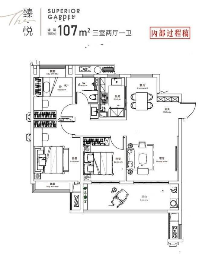 92平米的高层户型,双卧室朝南,客厅与卧室连接大阳台,双阳台设计,通风采光条件好,动静分离,107平米的户型,还设计入户玄关,方便收纳,满足更加多元化生活需求。