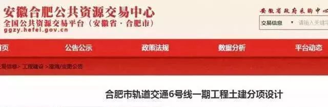 早在7月21日,合肥公共资源交易中心就发布了《合肥市轨道交通6号线一期工程土建分项设计招标公告》,项目概算11316万元,宣告地铁6号线即将启动!