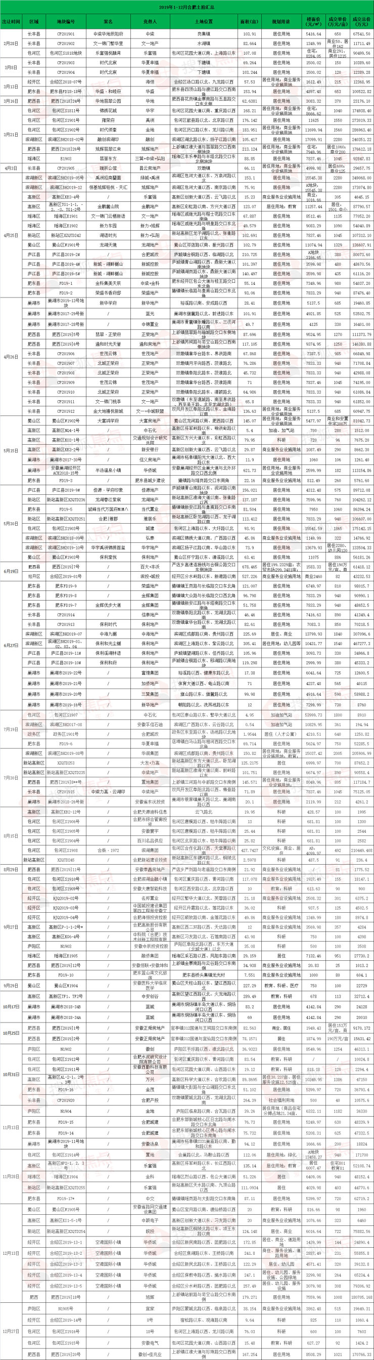 合肥2019年土拍正式落幕