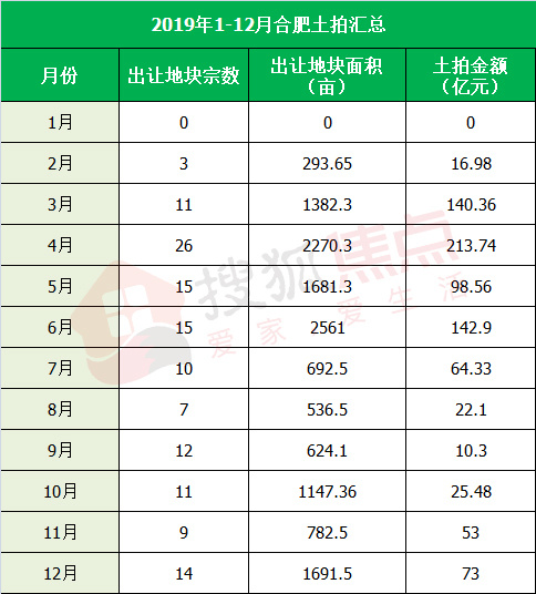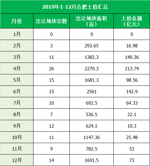 1、2019年4月,是出让地块宗数最多、面积最多以及成交金额最多的月份,4月合肥土拍成功出让26宗共2270.3亩地,揽金213.74亿元。