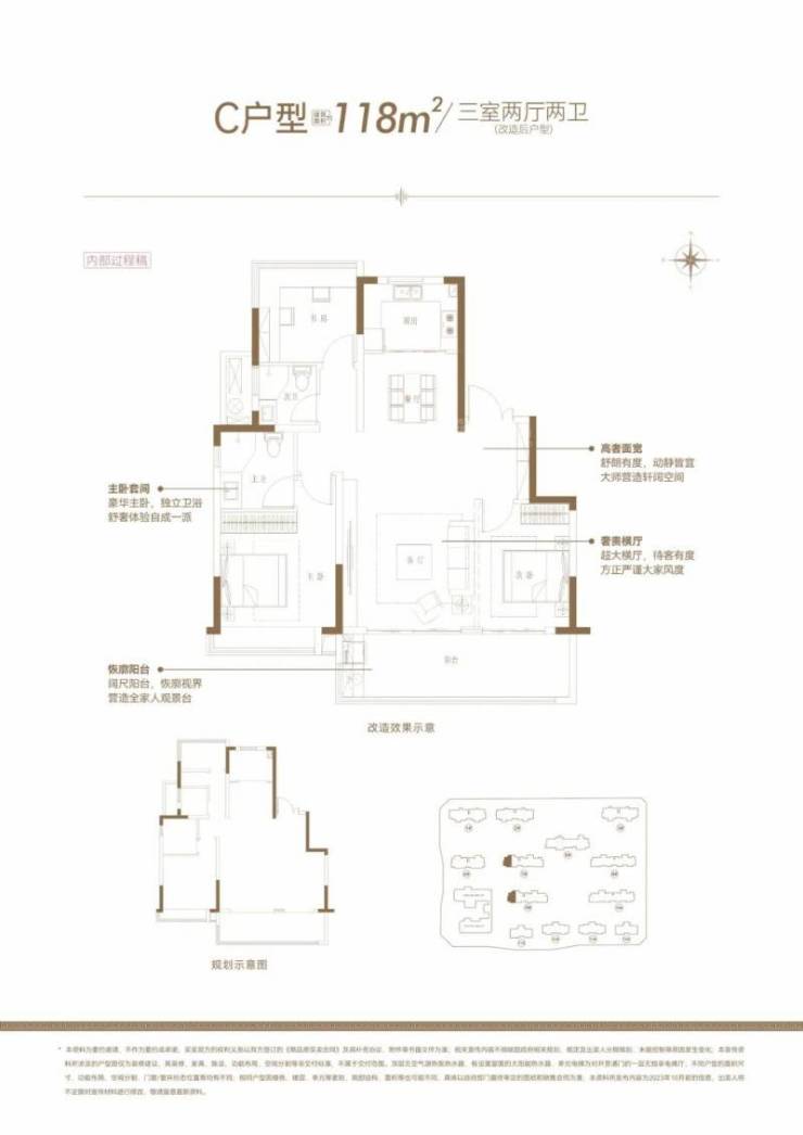 项目主打建面约118-234㎡户型,皆是大面宽、大客厅、大阳台的设计。