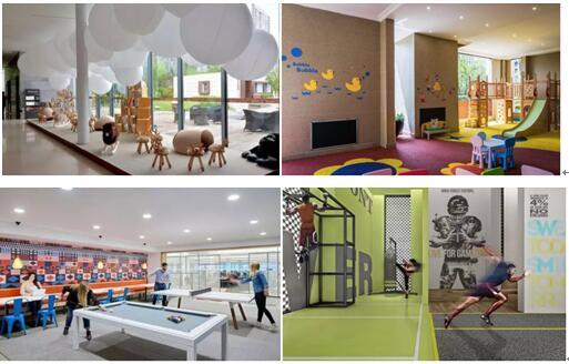 除此之外,利用部分面积打造互动主题架空层。加强场地的主题化和功能性(儿童娱乐区、成人健身区、老人休闲区),同时打造邻里互动空间。