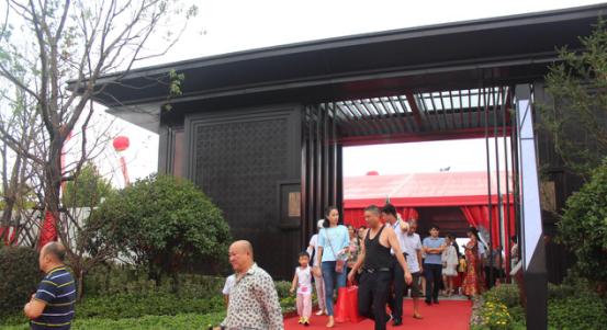 随着礼炮腾空而起,华盛·江山御府府门徐徐开启,来宾们有序的走进项目景观示范区。