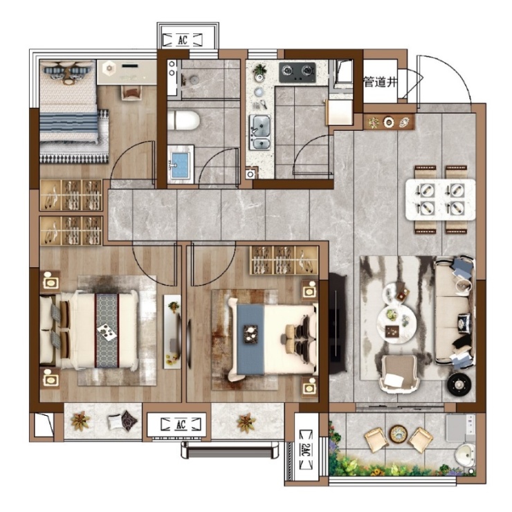 三房两厅灵动空间,南向三开间,采光面较大化,朝阳双卧均配置飘窗,延展室内空间,居住超出想象。