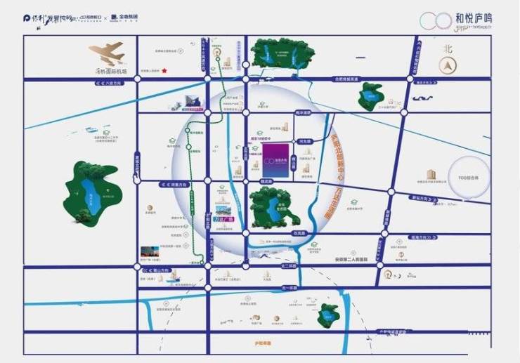 和悦庐鸣项目位于北城的核心区域,紧邻合肥主城区,与丰乐生态园仅一街之隔,享有丰富的自然资源。项目周边交通便利,魏武路、阜阳北路高架等主要交通干道近在咫尺,多条公交线路交织,为居民的日常出行提供了极大的便利。此外,项目周边还配备了银河苑小学、宇桥小学、双凤医院、御园金街等教育、医疗、商业配套,虽然与主城区的成熟度相比略有差距,但基本的生活需求完全可以得到满足,为居民提供了便捷的生活环境。