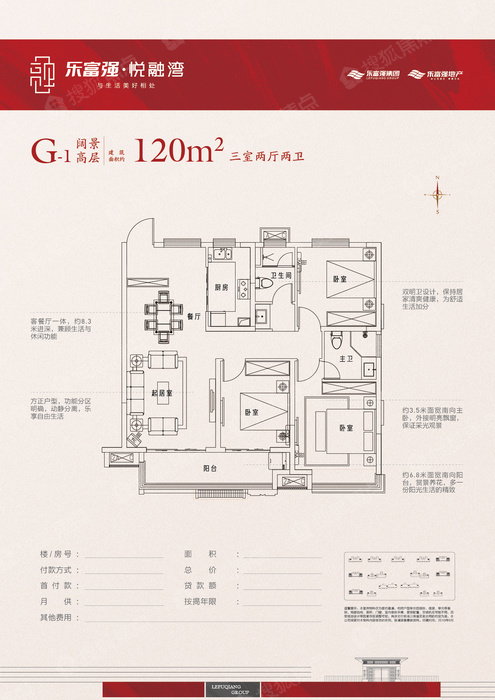图为乐富强融悦湾高层-3室2厅2卫-120.0㎡