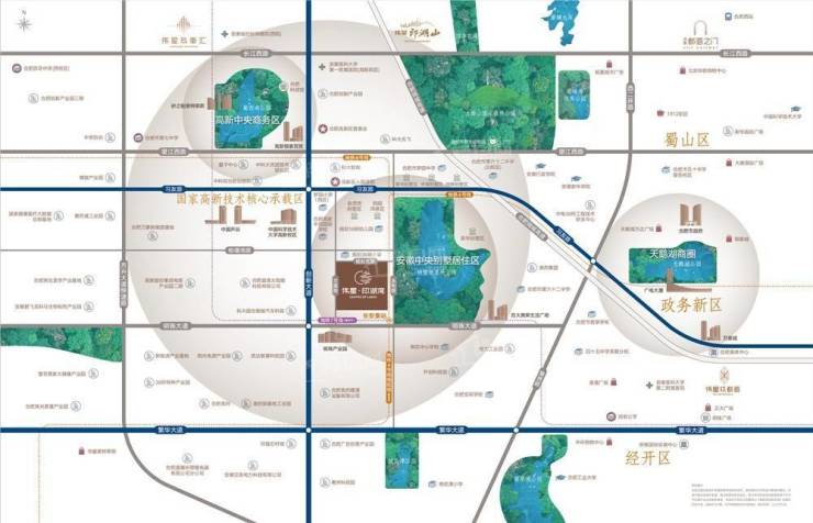 项目周边环境优美,拥有一山两湖,蜀西湖公园,柏堰湖湿地公园,以及大蜀山国家森林公园,让居民可以尽情享受自然风光。