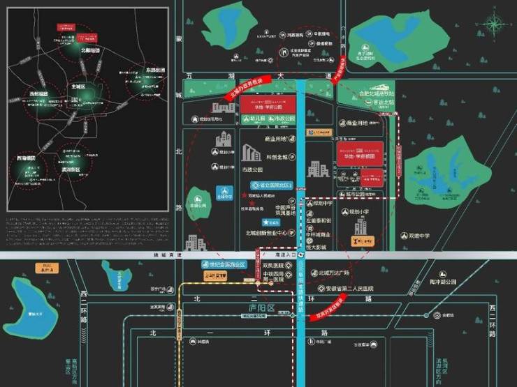 该项目坐落于长丰县双墩镇月牙沟路与涡河路交汇处的西南角,紧邻阜阳北路这一重要交通要道,并与北城高铁站仅一步之遥。尽管项目不在主城区范围内,但周边的生活配套设施非常齐全,交通条件极为便利。项目周边不仅有阜阳北路和蒙城北路这两条主干道,还规划了地铁八号线,这条即将建成的地铁线路将极大地缩短北城与合肥市区之间的距离,使得居民出行更加便捷。对于驾车一族来说,这里无疑是一个理想的居住地。此外,项目周边还规划了幼儿园、新华艺术高级中学、北城中学、云锦小学等丰富的教育资源,能够满足孩子们的教育需求,为家庭提供一站式的教育资源。