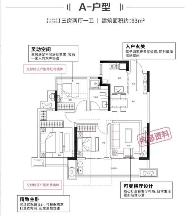 93平方米的三房两厅一卫户型是该项目的主力户型之一,三个开间朝南,客厅和次卧的阳台相连,主卧留有衣帽间位置,舒适度较高。而118平方米的四房两厅两卫户型则更适合多孩家庭,虽然北边两个卧室的采光可能不够好,但整体布局依然合理。