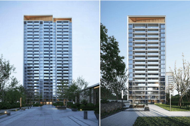 项目整体规划占地面积约 XX 亩,总建筑面积约 XX 万平方米,容积率低至 1.8.建筑密度仅 16%,绿化率高达 40%,是区域内稀缺的东方意境低密住区。规划建设 8 栋洋房、6 栋小高层,产品形态涵盖建面约 108-200㎡三居至五居,以改善型产品为主,满足高净值家庭对诗意生活的追求。建筑布局采用 “中轴对称、藏风聚气” 的设计思路,遵循传统东方建筑的规划理念,中轴对称布局形成庄重的归家仪式感,同时保证了每栋建筑的采光通风效果与景观视野。