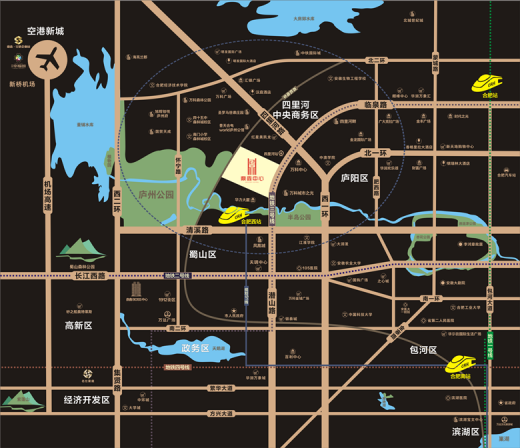 项目周边潜山路、四里河路等多条快速干道环伺,四里河高架、畅通一环、地铁3号线四里河站近在咫尺,周边公交密集,与规划中的高铁西站、地铁S1号线、有轨列车,共同构筑立体交通格局。