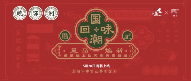 5月20日起,龙湖商业华中区将联合安徽老字号代表品牌“詹记”首次开展“国潮回味”线上限时快闪店活动。