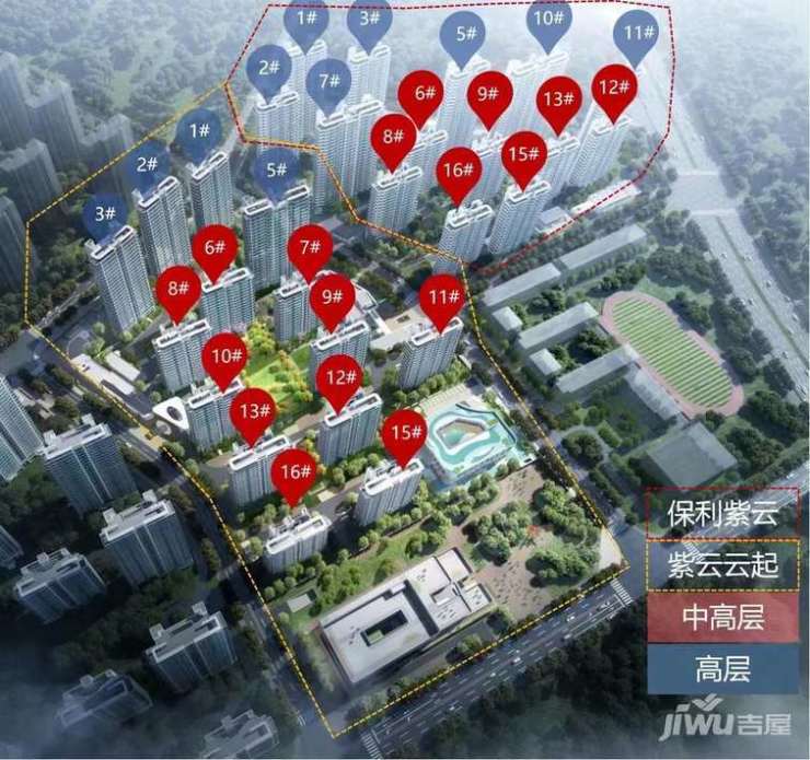 保利紫云云起规划拟建14栋住宅,高层、小高层为主,旁边还有规划代建的12班幼儿园,主力户型面积88-118平,是保利为刚需客群打造的高品质人居作品。
