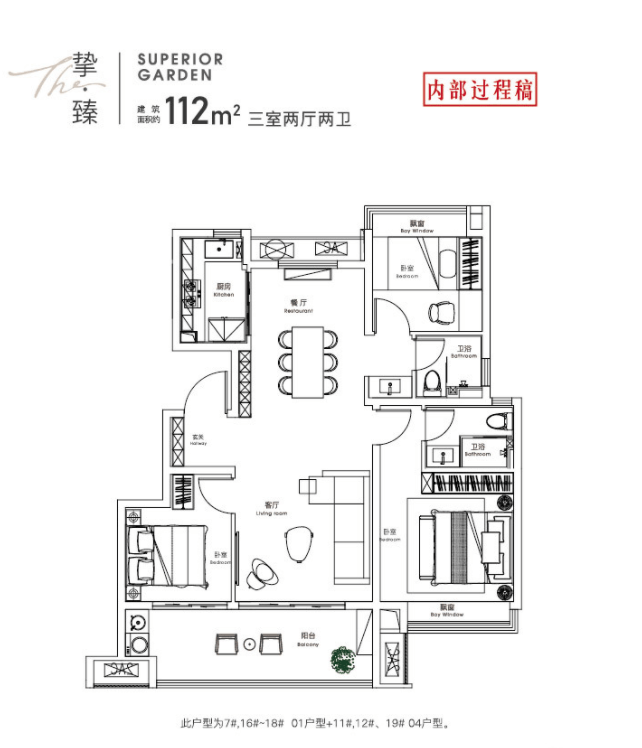 还有建面约112㎡的洋房户型,南北通透设计,更好的确保室内采光和空气;主卧套房设计,私密性更好,也更加实用;同时北向卧室带拐角飘窗设计,视野开阔,居住舒适。