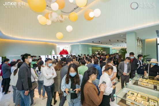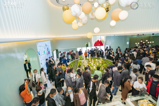 启动仪式礼成,气球漫天飞扬,宣告金科·中国首座亲子主题示范区正式开放!到场宾客有序进入示范区内场,进行现场咨询和品鉴。